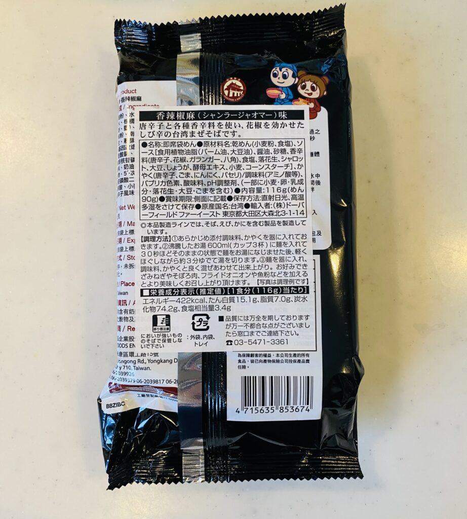 | 商品名 | 台湾汁なし麺 香辣椒麻(シャンラージャオマー)味 |