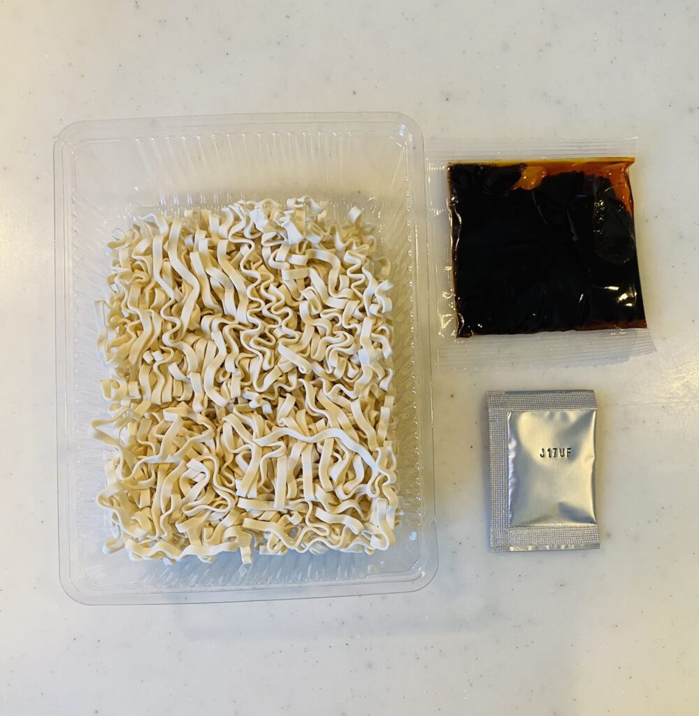 銀色の小さな袋には唐辛子入りの調味料が入っていて、辛さの調整ができそうです。