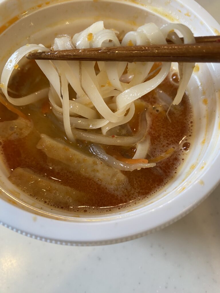パッケージには「エビとスパイスのココナッツスープ」とあり、スープだけだと思い、自分で米めんを足そうかなと思ったのですが…最初から入ってました!底面のラベルをよく見ると「ビーフン」と書かれていました。うれしい驚きです。