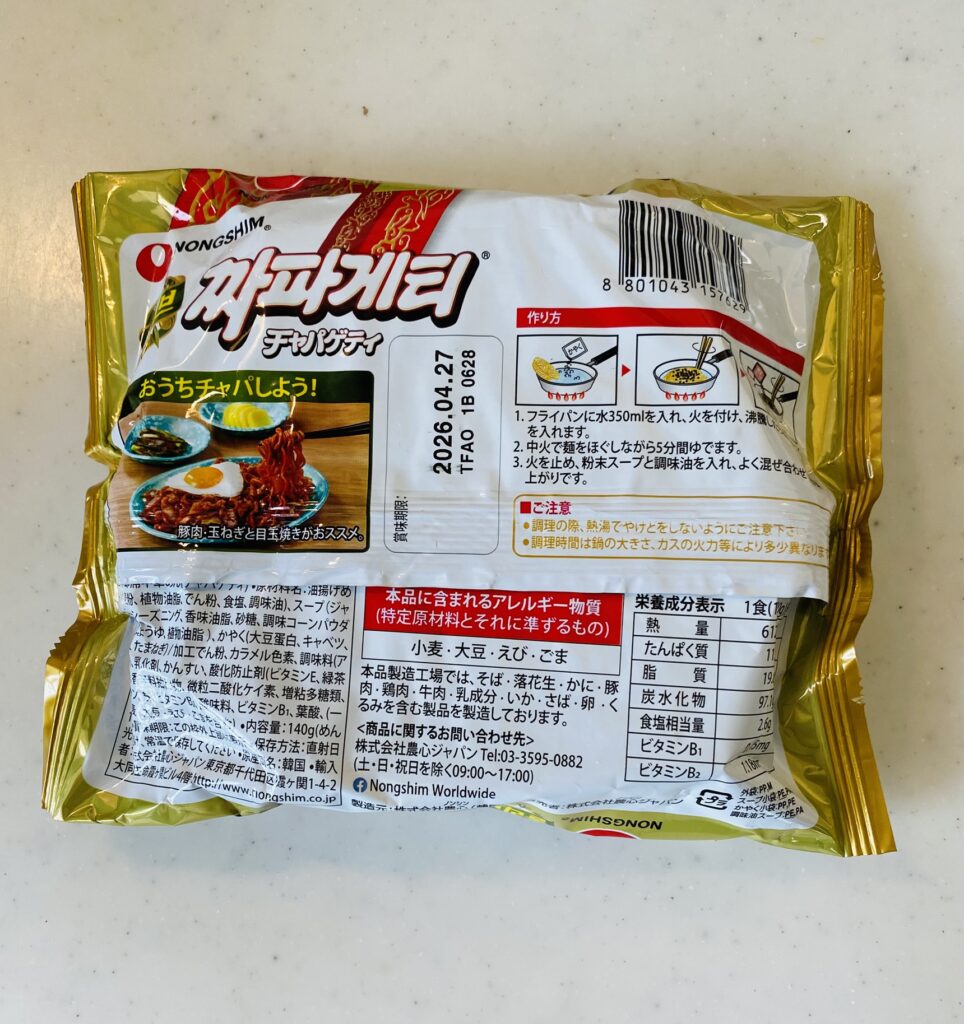 韓国の焼きそば風インスタント麺「チャパゲティ」を食べてみました。
