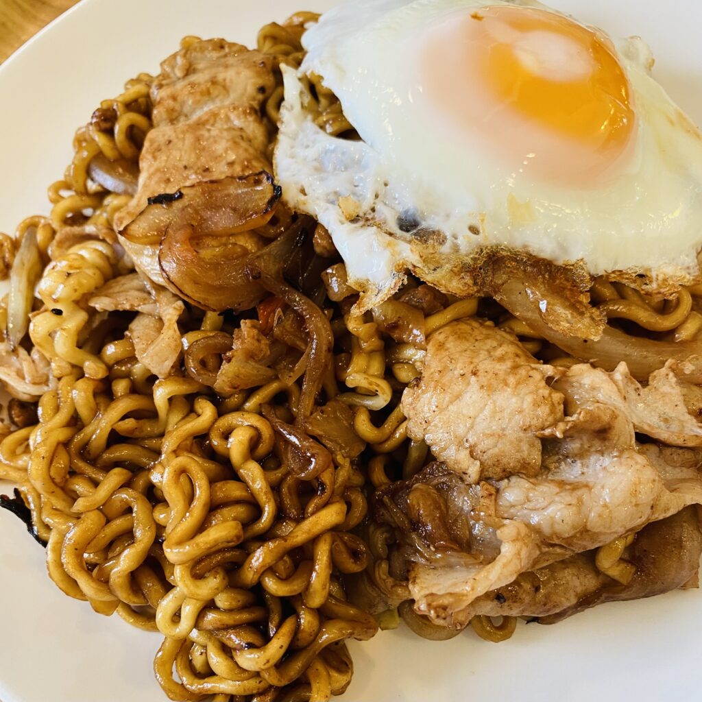 パッケージには“豚肉・玉ねぎ・目玉焼きがおすすめ”とあったので、迷わずそのままトッピングに。これがよく合っていて助かりました♪